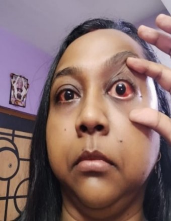 - Day – 4: Both the eyes are RED/PINK, the left eye is visible here predominantly.