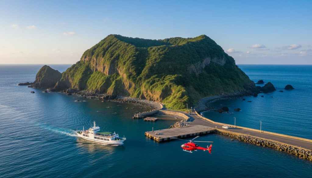 From Tokyo, travel first to Hachijojima by flight or overnight ferry, then continue to Aogashima by boat or helicopter. The ferry takes about 2.5 to 3 hours to reach Sampo Port but may be canceled in rough seas, while the 20-minute helicopter flight requires advance booking and can be affected by fog or wind. Since both options depend on weather, always plan a backup and allow extra time. Upon arrival, renting a car makes it easier to explore the island.